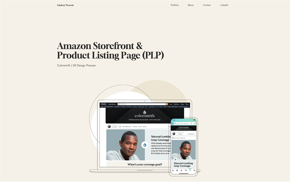 The next thing they’ll see is the cover photo and title of your UX case study. Don’t overcomplicate this. Make everything as clear as possible. Name the product and the work you did. Use product photos or an image that’s relevant to the product, and make sure that the title font is readable.